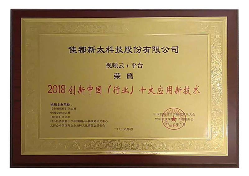 9月28日至29日,2018中国创新与经济融合发展大会暨(第二届)创新成果推介活动在北京举行。JDB电子科技斩获双料奖项, 视频云+大数据应用平台获2018创新中国(行业)十大应用新技术,脸识别终端一体机获2018创新中国(行业)十大产品。